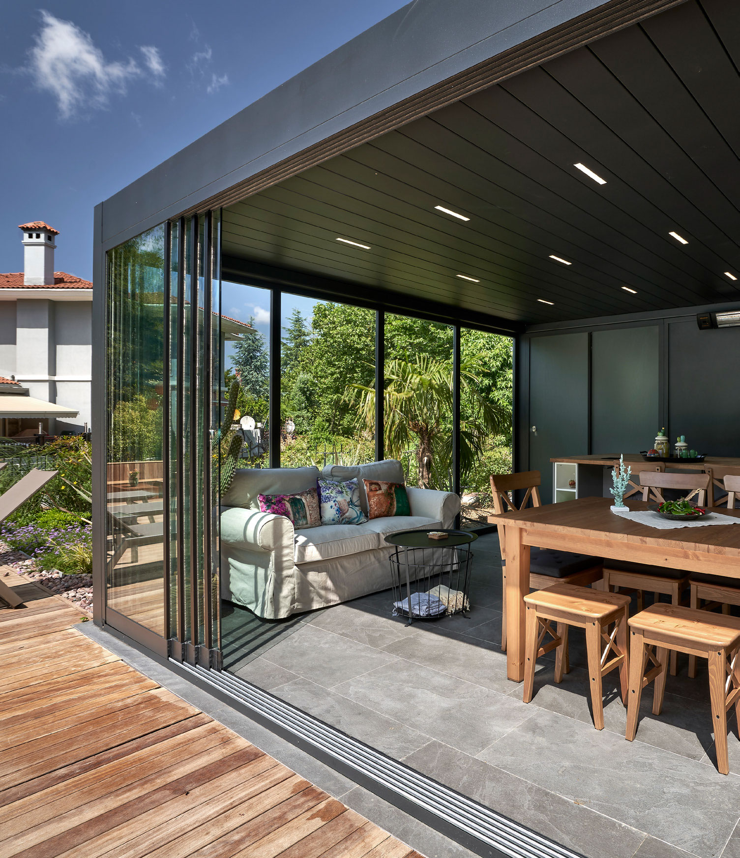 Változtassa lakótérré külső tereit időjárástól függetlenül. A napfény szabályozható a lamellák forgatásával vagy elhúzásával (típustól függően). A 100%-ban vízálló tető és a beépített rejtett vízelvezetés garantálja, hogy a csapadék nem jut be a lefedett területre. Hóbírás mérettől és típustól függően akár 336 kg / m2.